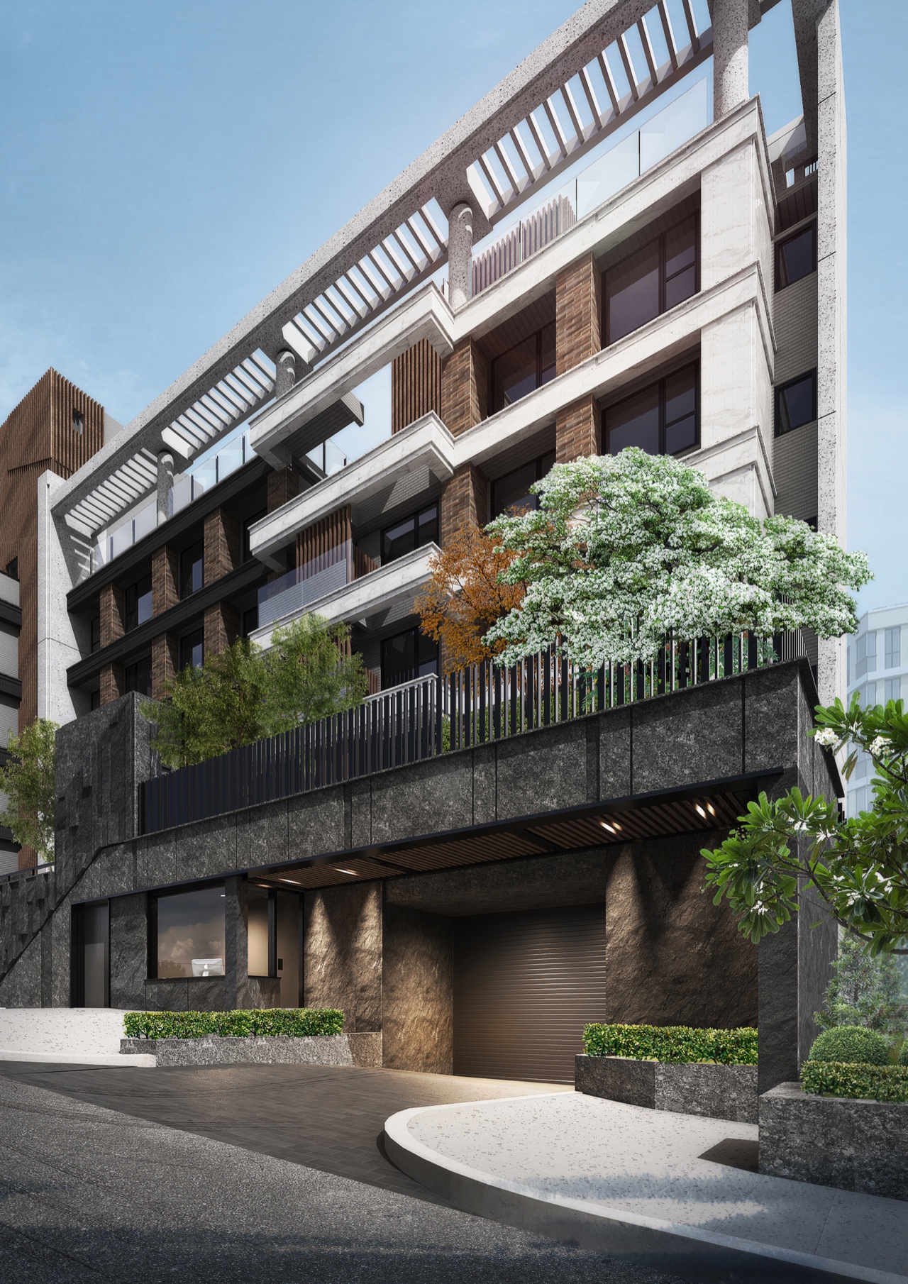 雙拼格局獨棟建築,超越60米面寬與陽明山國家公園接景,融入天母獨特的青山綠水!自然色系的外飾建材,謙抑與周圍景緻相容相應!階階高升與地形結合設計,生活就在風景內!