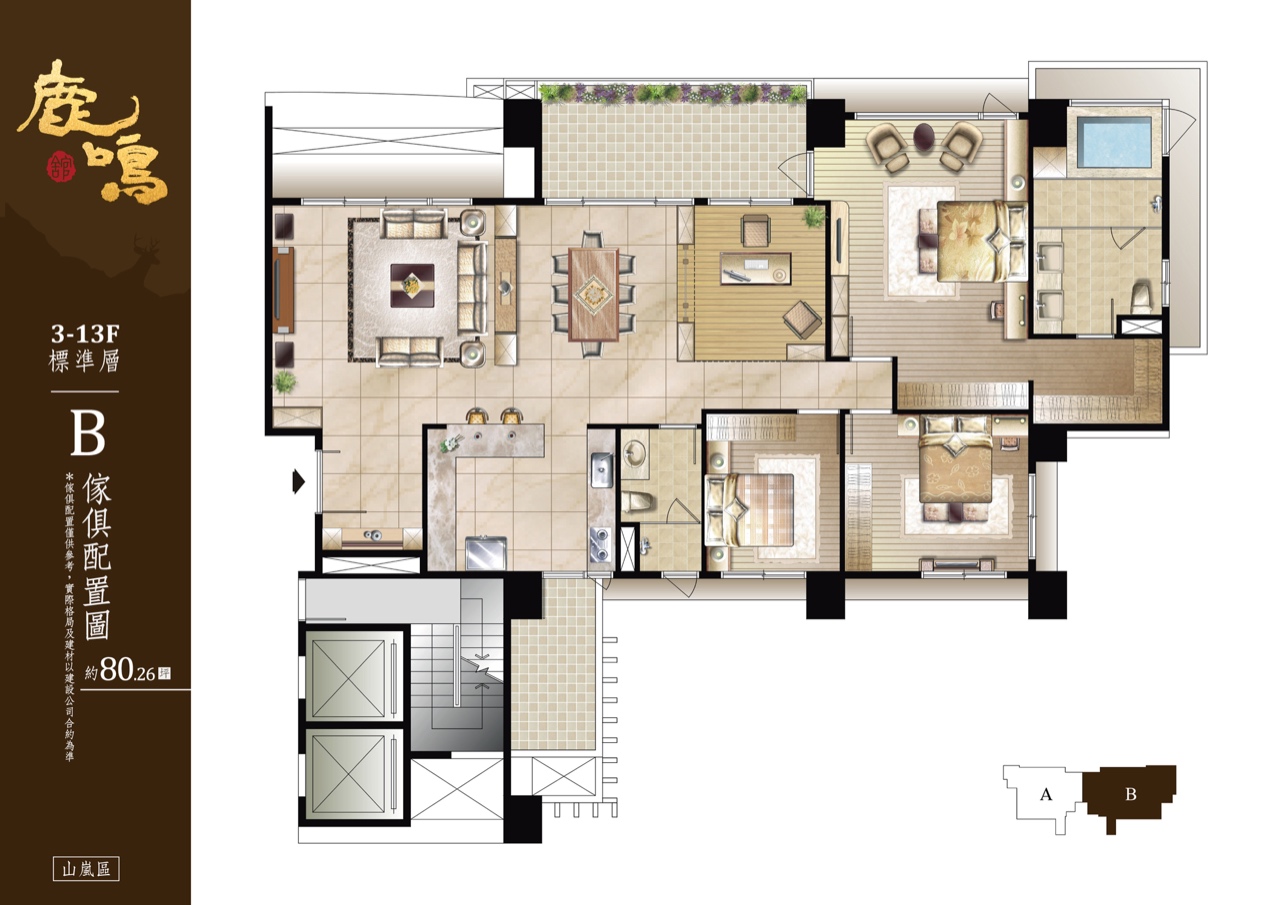 住宅有綠相襯,自然環抱,是住的精品!與自然零距離,讓鳥叫蟲鳴成為生活中的常客。基地面臨自然保育區大片樹海,永久棟距,景觀條件極佳。森入自然大視野,享受自然的照顧,靜謐的生活沈澱!