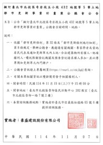 最新消息 【奇岩案】都市更新事業計畫案 – 公聽會公告 Posted on 2025 年 11 月 4 日2025 年 11 月 4 日 by 豪盛建設 04 11 月 都市更新事業計畫案公聽會公告 開會時間:114年11月19日 地點:臺北市北投區崇仰區民活動中心 202教室 豪盛建設 【都更專區】台北市北投區奇岩段